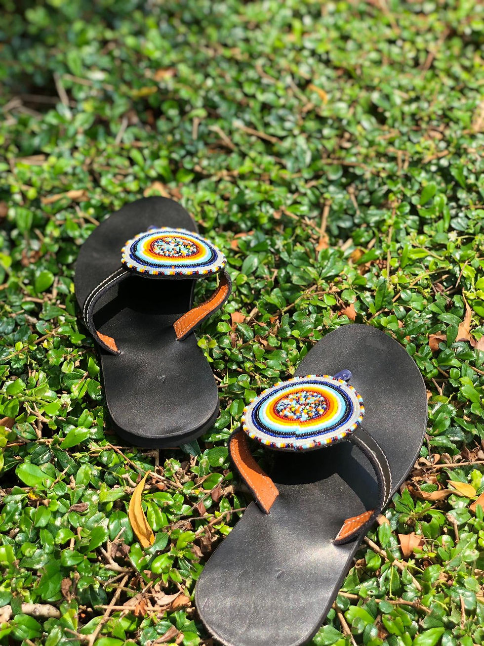 All of our sandals are made with quality Ugandan leather, hand beaded and feature a non-slip sole. They look great and I know myself they are very comfortable, as I wear mine every day!